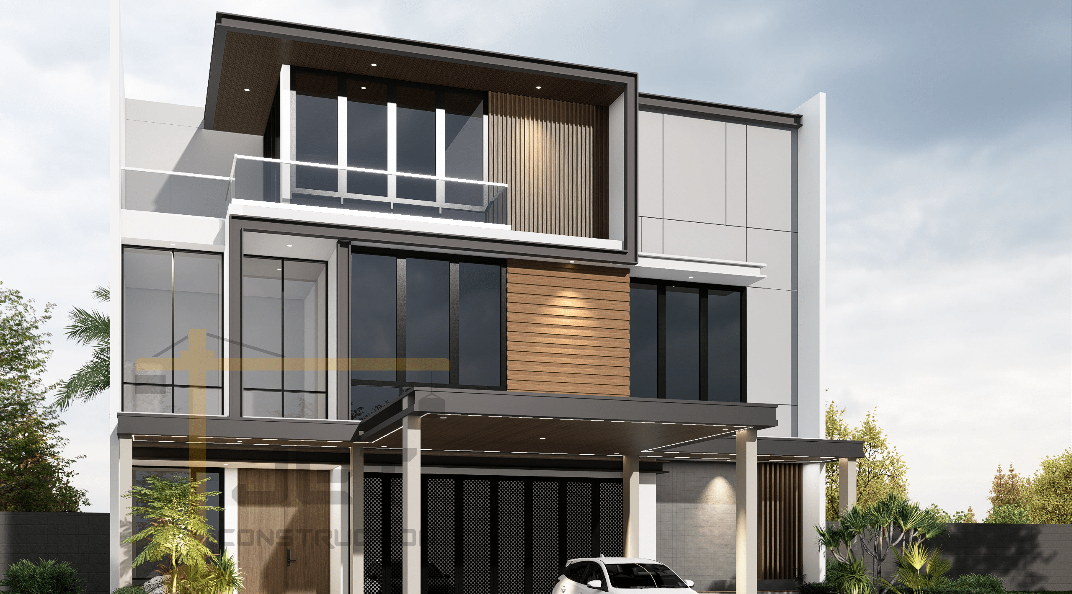 Project Design-Build & Interior rumah yang berlokasi di Kota Wisata Cibubur. Design exterior oleh Jet Construction, Design interior oleh arsitek luar, Jet Construction mengerjakan pekerjaan sipil menyesuaikan design, dan furnish pengisian interior rumah 3 lantai dengan luas bangunan 450m2. Saat ini sedang proses pekerjaan interior.